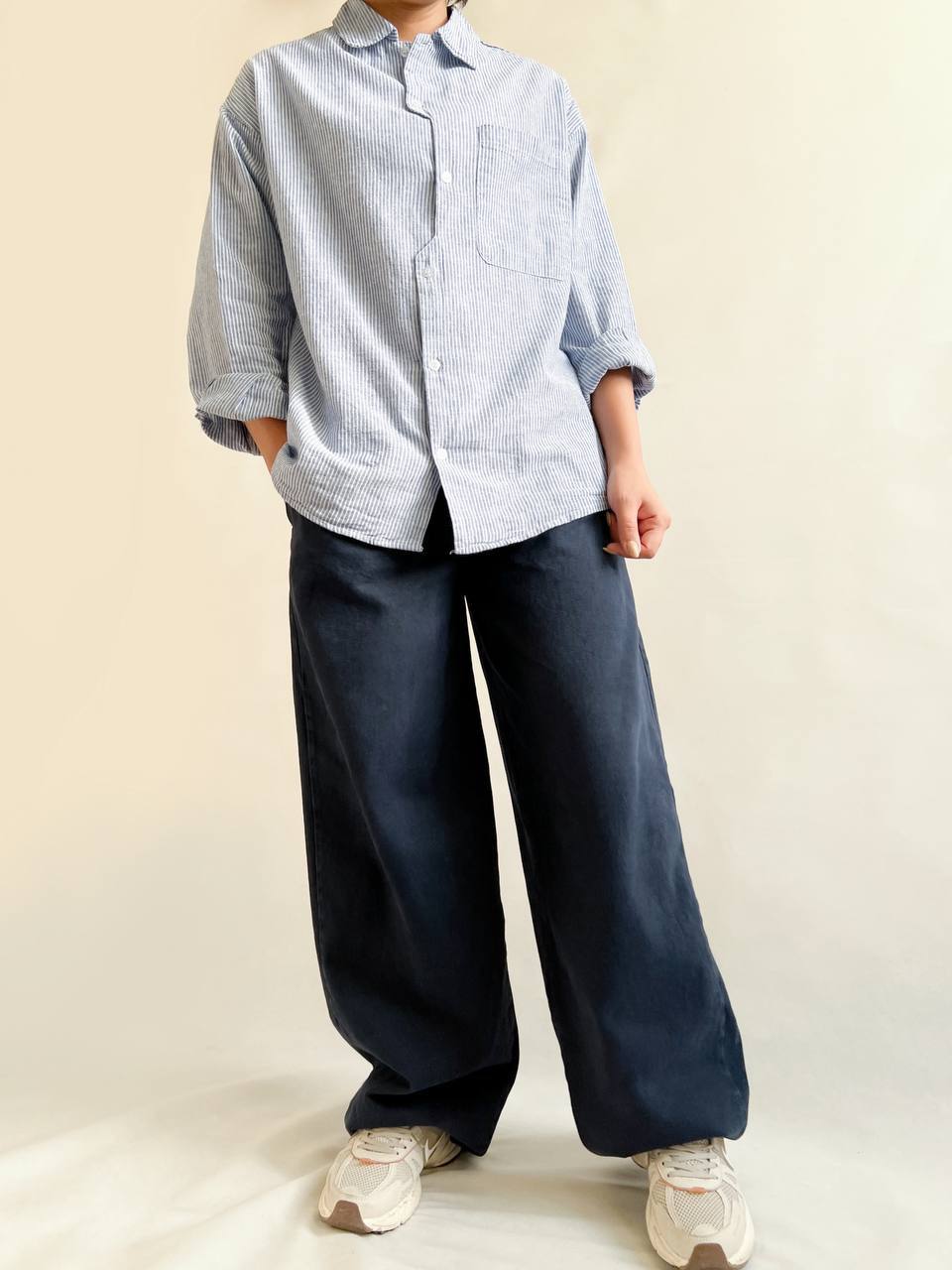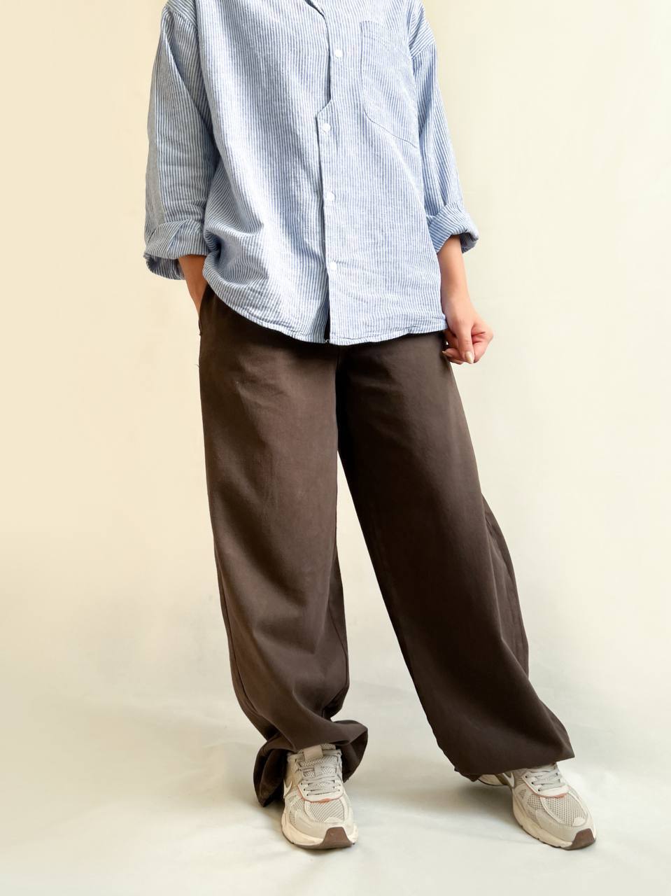 - شلوارهای متنوع: کلکسیونی کامل از شلوارهای جین و کتان در مدلهای مختلف از جمله شلوار جین واید لگ و شلوار لینن که برای استایلهای اسپرت و روزمره ایدهآل هستند.