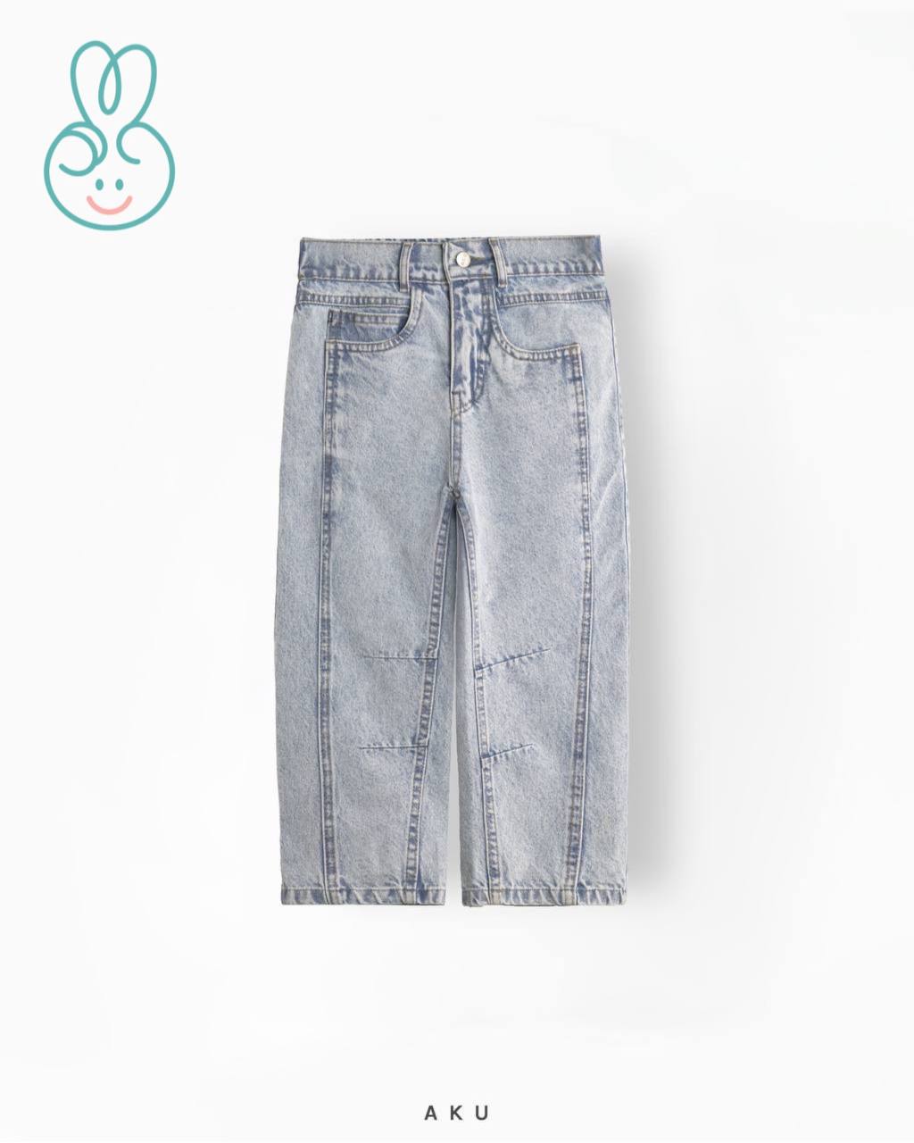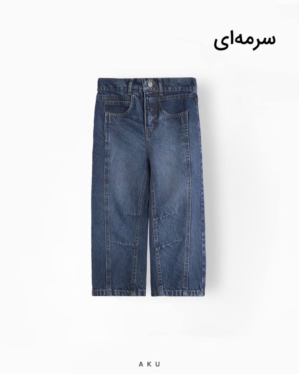 شلوار جین بچگانه نیم بگ جلو دکمه برند آکو AKU